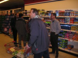 Verslag dienstweekend 2003 deel 5Eerst gaan we enorm boodschappen doen om de behoeftes maximaal te kunnen bevredigen. We zijn niet voor niks rond de 35!. Alles schaffen we aan; chips, tijdschriften, brood en iets kleins te drinken, nee, ons zal het aan niets ontbreken.