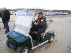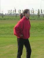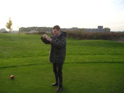 Verslag dienstweekend 2003 deel 7Golfen!We moeten wel alles bijhouden, ziehier Guus met camera en de instructrice