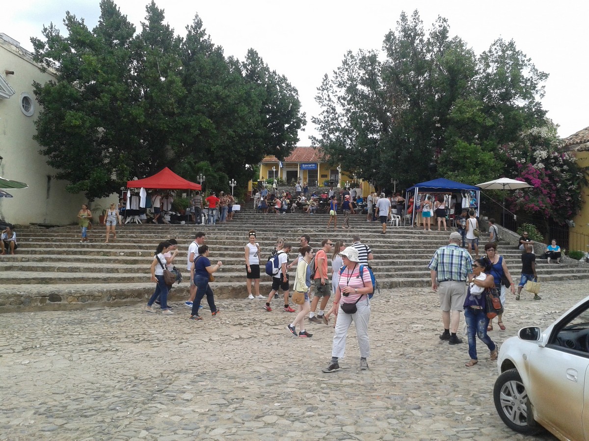 8 t/m 17 januari Na een helse rit van 500 km door het land komen we aan in Trinidad. De naam Trinidad is beter bekend van het gelijknamige eiland, maar hier betreft het een goed geconserveerd stadje aan de zuidkant van Cuba. Overal kinderhoofdjes als wegdek zodat het een middeleeuws karakter heeft. De stad is overladen van muziek en ondanks het regenachtige weer hebben we hier een geweldige tijd. Zelfs de interieurs van de huizen is vaak in een soort art-deco stijl. We gaan in Trinidad naar het strand, we krijgen een cursus Cubaanse percussie, bezoeken een berg en een grot.
